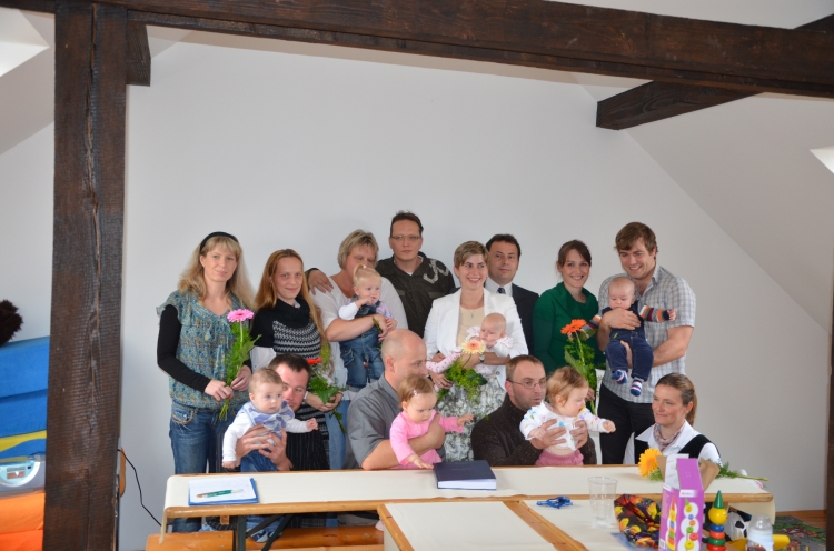 V sobotu 22.10.2011 se konalo historicky 1. vítání občánků v naší obci. Tohoto slavnostního aktu se zúčastnilo všech 6 pozvaných občánků, kteří se narodili v posledních 12 měsících, včetně jejich bohatého doprovodu. Při této příležitosti děti obdržely hračku a pamětní list, maminky kytičku a oba rodiče stvrdili svým podpisem do knihy zápisu o uvítání do života, že své děti řádně vychovají. Přivítáni byli: